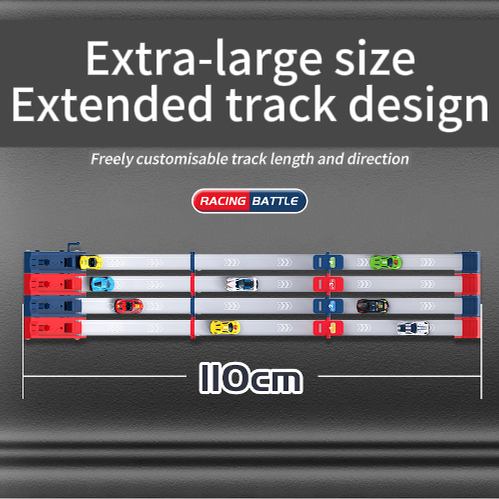 EXTENDED 110CM TRACK - The extra-long track design provides an extended runway for high-speed action. This creates more suspenseful races and allows cars to reach their maximum momentum for thrilling, photo-finish endings every time.